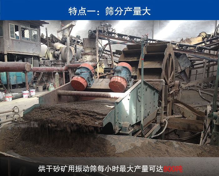 烘干砂礦用振動(dòng)篩每小時(shí)產(chǎn)量可達(dá)800噸