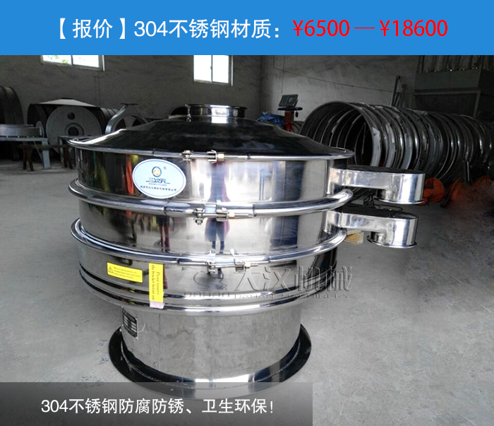 304不銹鋼防腐防銹、衛生!——304不銹鋼材質的振動篩是采用304不銹鋼材質(兩種結構規格:一、整機均采用不銹鋼制成;二、物料接觸不分為不銹鋼材質,底座為碳鋼材質),它是食品、醫藥專用材質,雖然我們要篩分的是化學物料錫粉,但是對于衛生環境要求較高的企業這也是不錯的選擇。