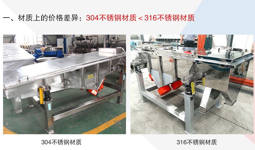 大漢不銹鋼直線振動篩材質(zhì)主要有304和316兩種不同的選擇,這兩者的區(qū)別在于316不銹鋼材質(zhì)比304不銹鋼材質(zhì)更耐腐蝕,能抵抗更高的溫度,但是其價格會比304不銹鋼材質(zhì)貴一些,所以如果您所要篩分的物料溫度和酸堿性一般,還是建議您選擇304不銹鋼直線振動篩。