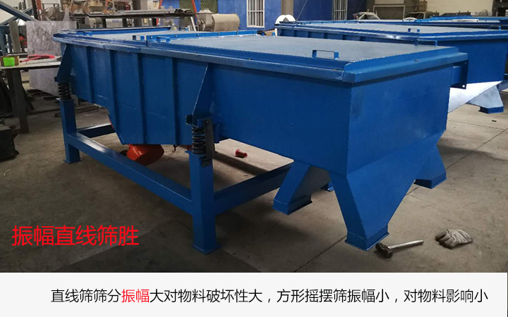 物料在直線篩的篩網(wǎng)上作直線跳躍運動,物料朝一個方向運動,振動幅度大,在跳躍和振動的兩者力下,物料很容易發(fā)生形態(tài)的變化,對物料的破壞性大;而方形搖擺篩也叫做平面回轉(zhuǎn)篩,機械通過搖擺使物料在篩網(wǎng)上循環(huán)做橢圓形軌跡運動,物料不需通過振動就可以達到篩分的目的。