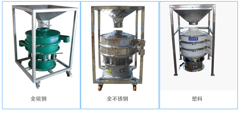 塑料材質的料倉旋振篩整體為PVC制成,具有較強的耐腐蝕性,無金屬無磁性,適合一些特殊的、會與金屬產生反應的物料篩分使用,例如氧化鋯、熒光劑以及其他一些化學助劑。